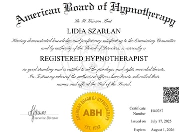 Certified in Hypnotherapy – Helping clients break free from anxiety, fears, and limiting beliefs.