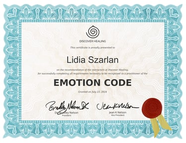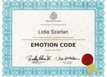 Hi, I’m Lidia Szarlan, a Certified Hypnotherapist and Emotion Code Practitioner passionate about helping people overcome personal challenges and achieve deep emotional healing.